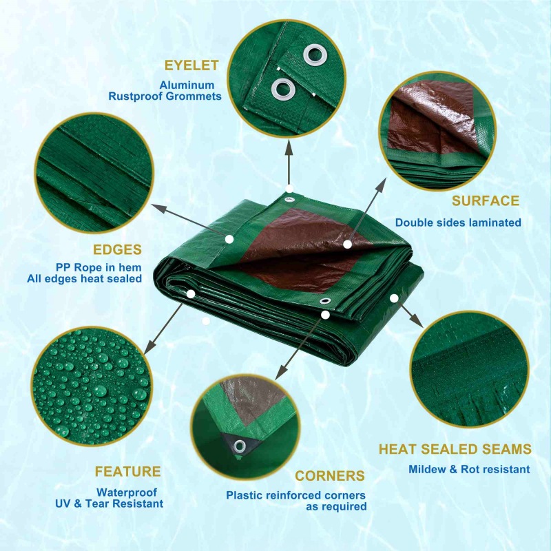 8'x10' 110GSM кафяв зелен PE брезент за защита на капака